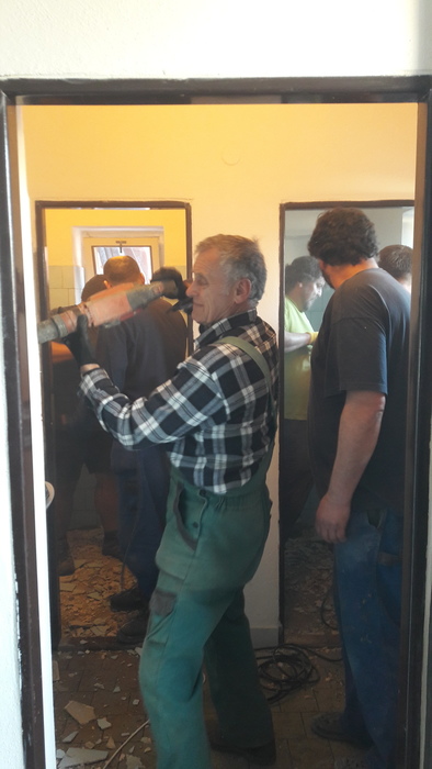 Úvod > Život v obci > Fotogalerie > Brigáda - rekonstrukce WC na kulturním domě